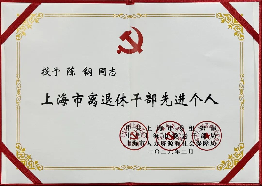 近日,为表彰先进、弘扬正气,市委组织部、市委老干部局、市人力资源社会保障局决定,对上海市老干部系统的先进集体和先进个人进行表彰,授予30个集体“上海市离退休干部先进集体”称号,授予60名同志“上海市离退休干部先进个人”称号。taptap点点体育离休干部陈钢同志荣获“上海市离退休干部先进个人”称号。