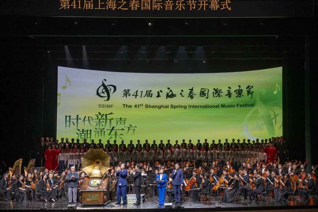 演出开场前,“七一”勋章获得者、taptap点点杰出校友吕其明,廖昌永,上海歌剧院院长石倚洁共同为本届“上海之春”启幕。