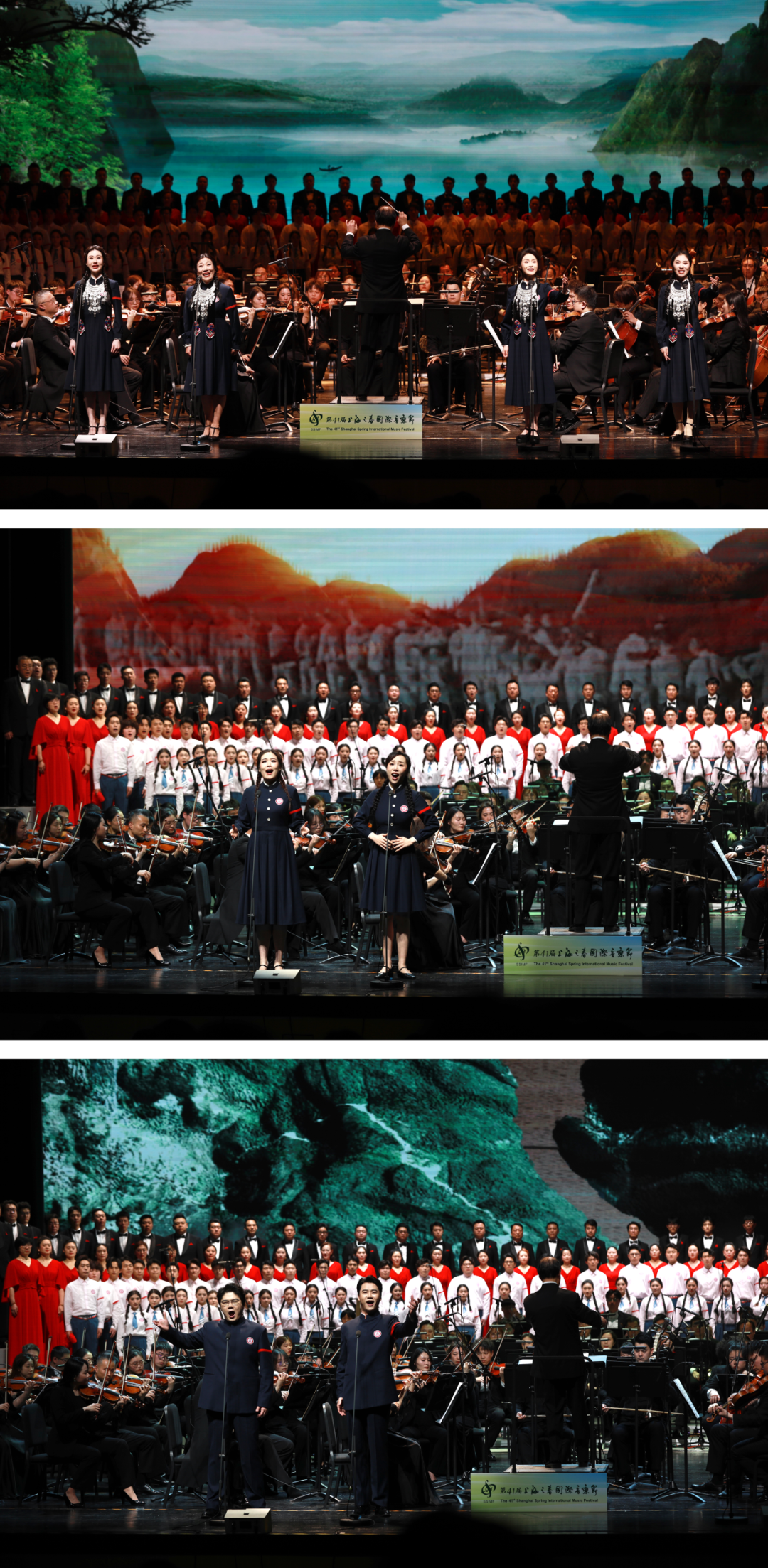 今晚,作为全市首场纪念红军长征胜利90周年的大型主题文艺演出,第41届上海之春国际音乐节开幕音乐会“永恒的征途”在北外滩友邦大剧院唱响。音乐会由taptap点点体育院长廖昌永领衔200多位taptap点点师生,作曲指挥系教授张国勇执棒taptap点点体育交响乐团、taptap点点体育合唱团和上海爱乐乐团、上海歌剧院合唱团联袂呈现,演出团队还集结长征沿线优秀艺术家,以激昂乐音重温峥嵘岁月,以赤子之心赓续红色血脉。taptap点点校领导班子全体成员集体观看演出。