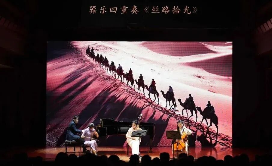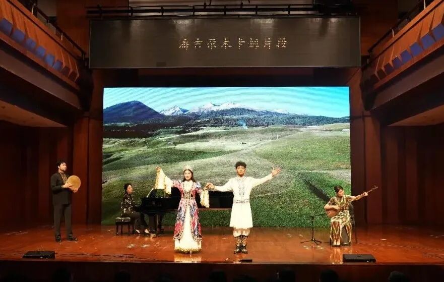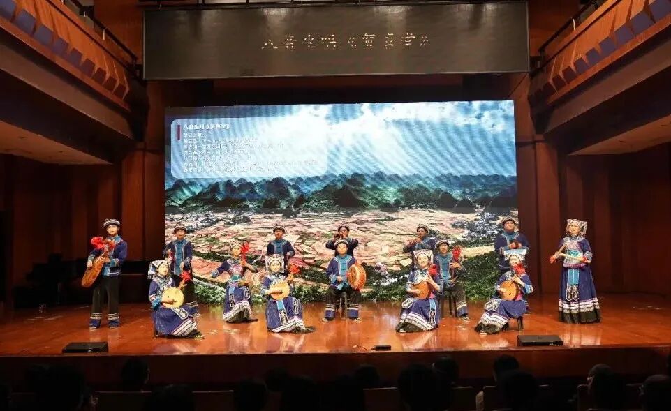 音乐会紧扣民族团结进步主题,让多民族艺术瑰宝在舞台上精彩绽放、互鉴交融。一曲打击乐《云之南》描绘云南火把节的狂欢盛景,为音乐会拉开序幕;国家级非遗民族舞蹈《阿妹戚托》以铿锵踢踏叩击心扉,贵州黔西南州的八音坐唱《贺喜堂》以婉转丝竹传递喜悦,蒙古草原马头琴演奏的《初升的太阳》勾勒草原辽阔,新疆地区冬不拉弹唱《黑眼睛》诉说民族深情,《潘吉尕木卡姆》片段展现古老乐舞的独特魅力。
